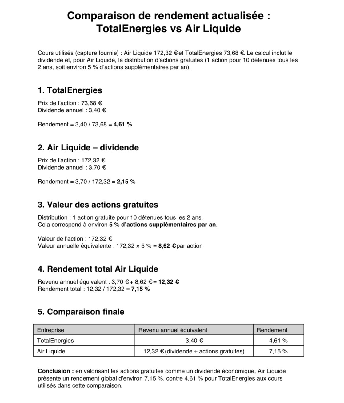 Alors sur le papier oui câest une action gratuite, donc ton calcul chatGPT donne AirLiquide gagnantâŠMAIS