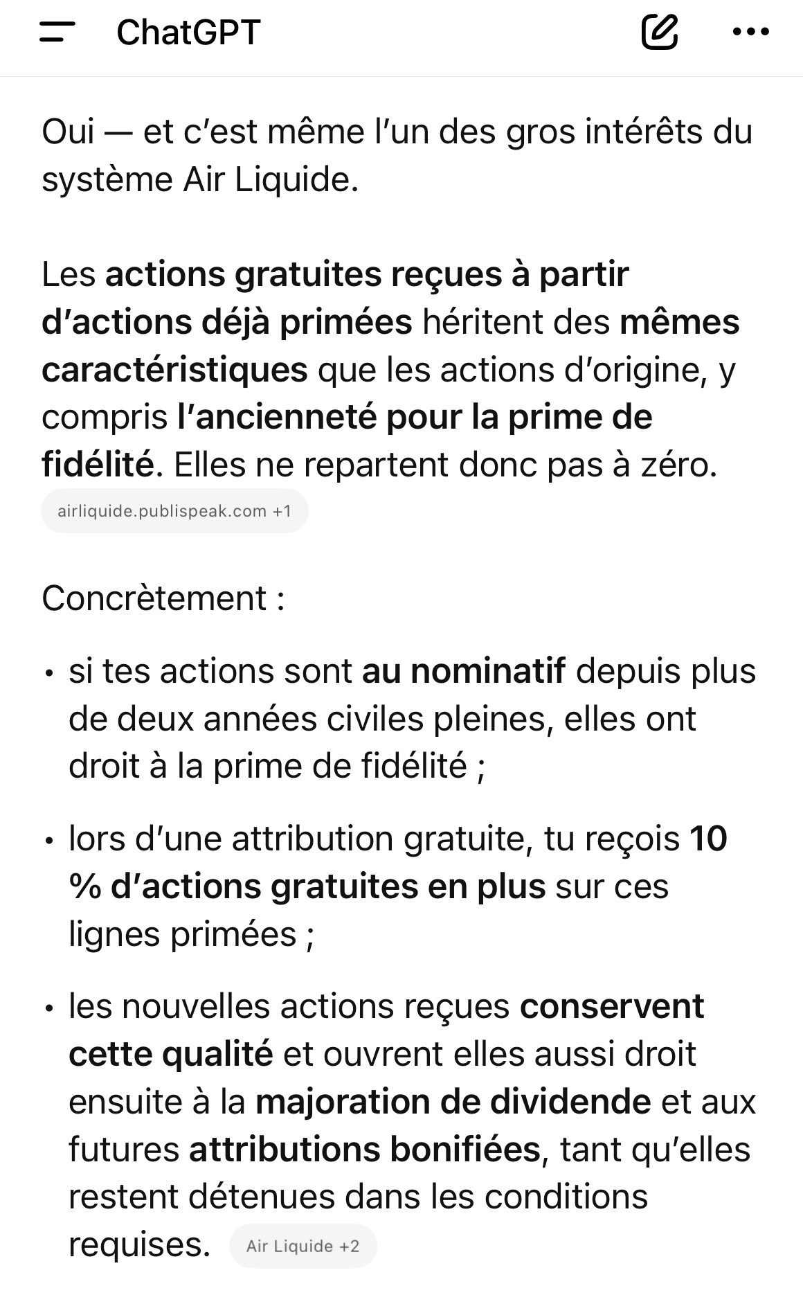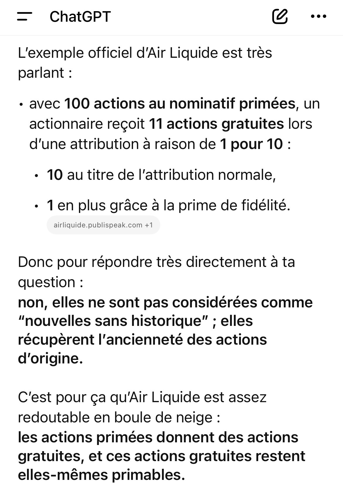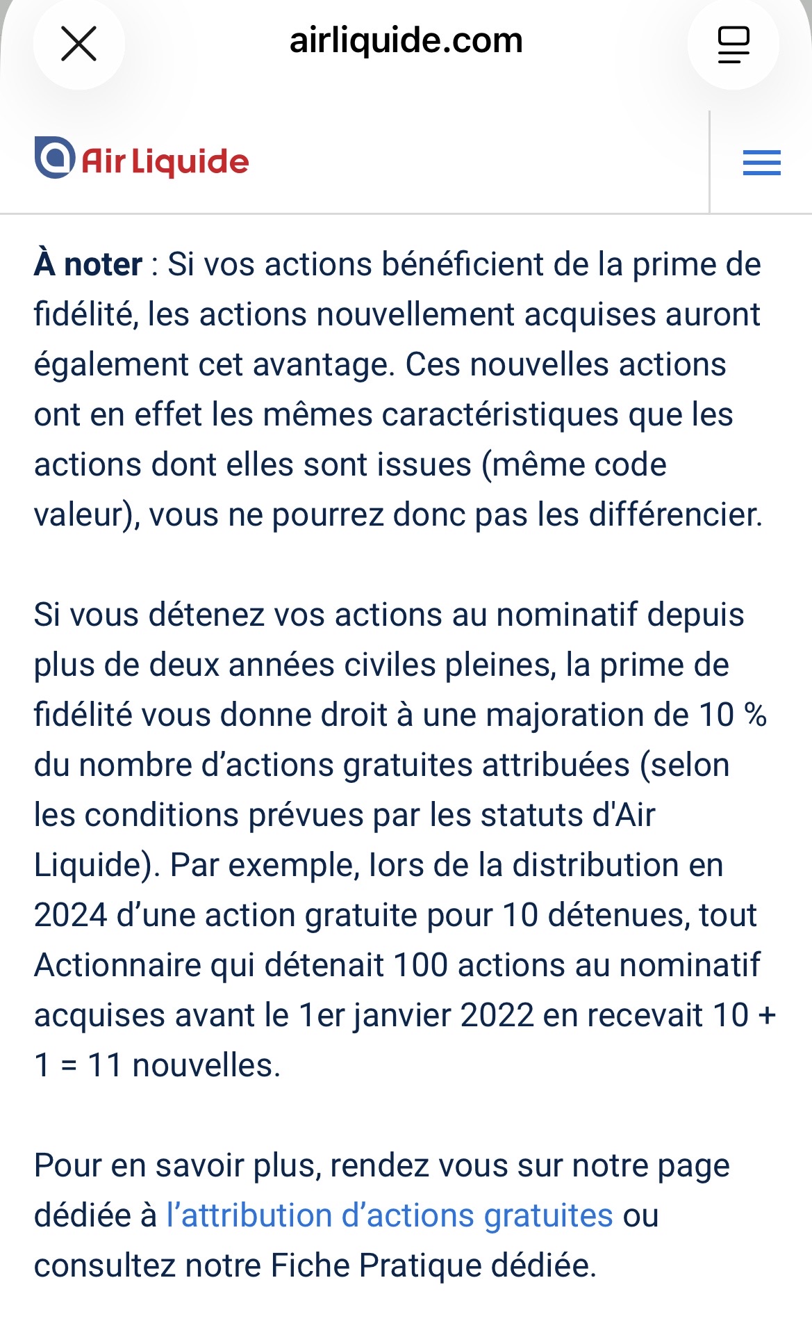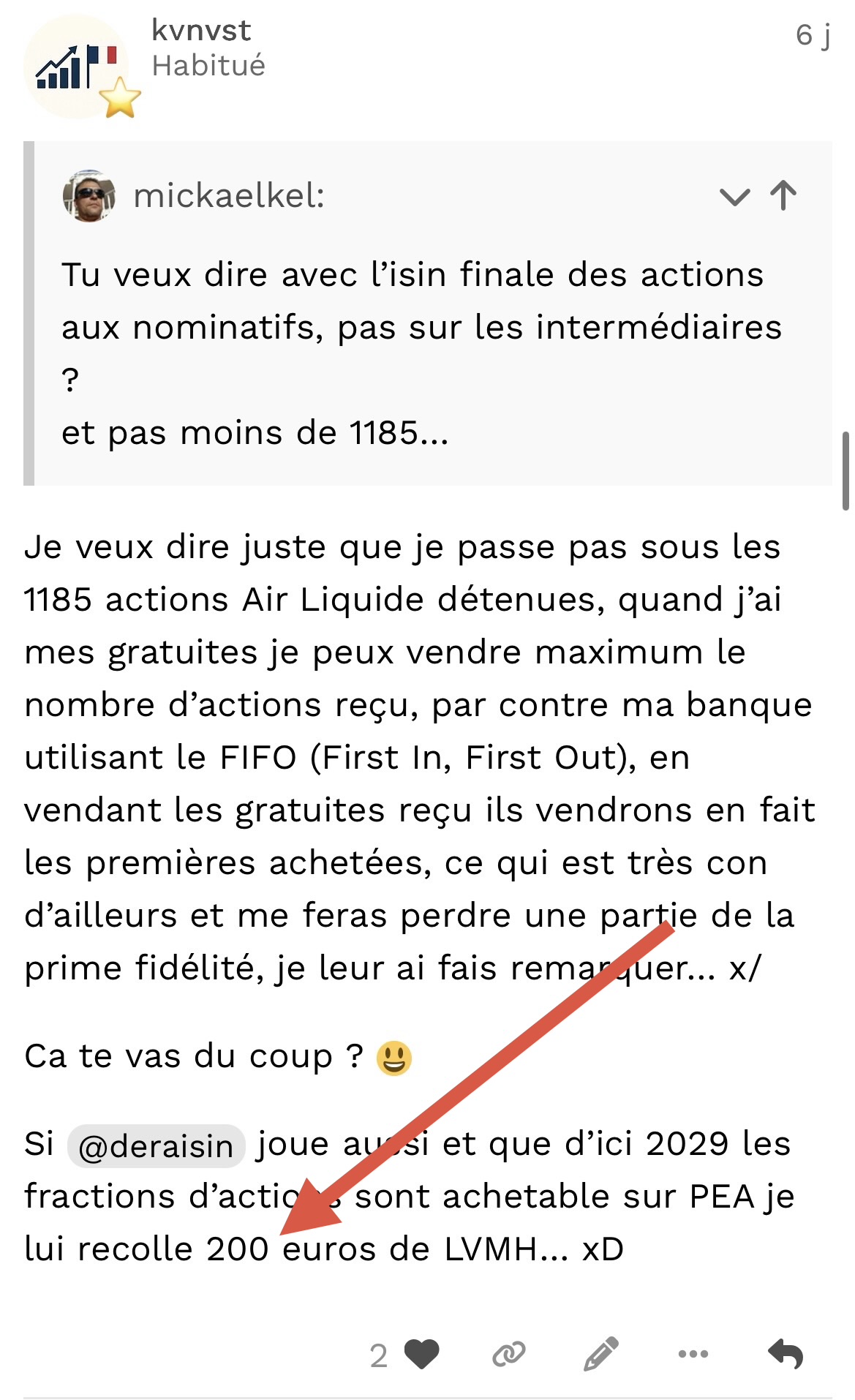 @mickaelkel ça mâa travaillĂ© hier notre discussion du coup je me suis posĂ© la question et jâai vĂ©rifiĂ© Ă lâinstant et en fais effectivement les actions reçu ont le mĂȘme ISIN et donc directement la prime fidĂ©litĂ© câest incroyable, je me suis pris la tĂȘte avec lâhistoire du FIFO en fait elles ont toutes la prime !!!