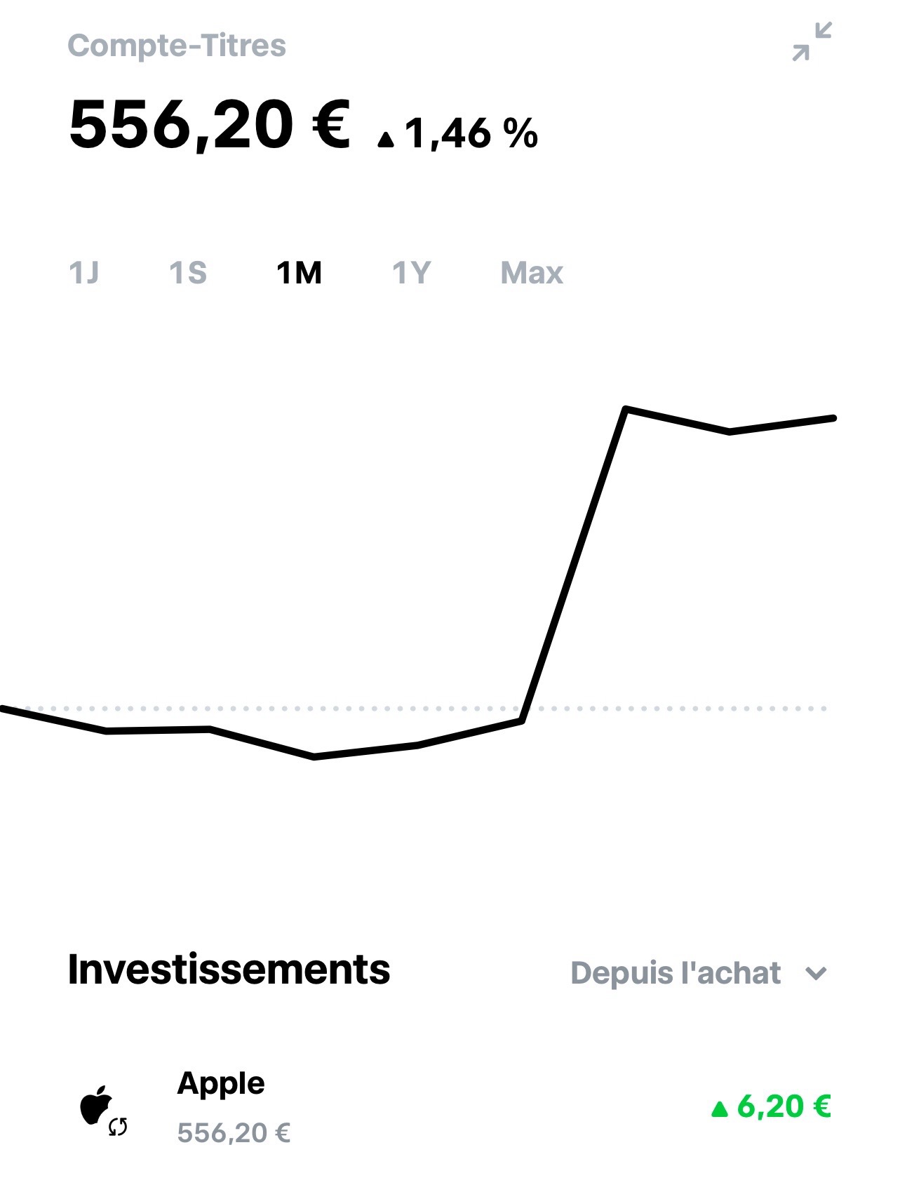 Ouverture dâun CTO sur Trade Republic afin de mâen servir de compte courant, premier versement de 550⏠sur Apple ce matin puis mise en place dâun versement automatique de 50âŹ/mois en plus de lâinvestissement de lâarrondis Ă lâEuro supĂ©rieur lors de mes achats et du CashBack de 1% offert par lâapplication. Je vous ai fais un petit portif CTO sur Moning mais il y aura rien de palpitant dessus câest juste histoire de le notifier ![]()