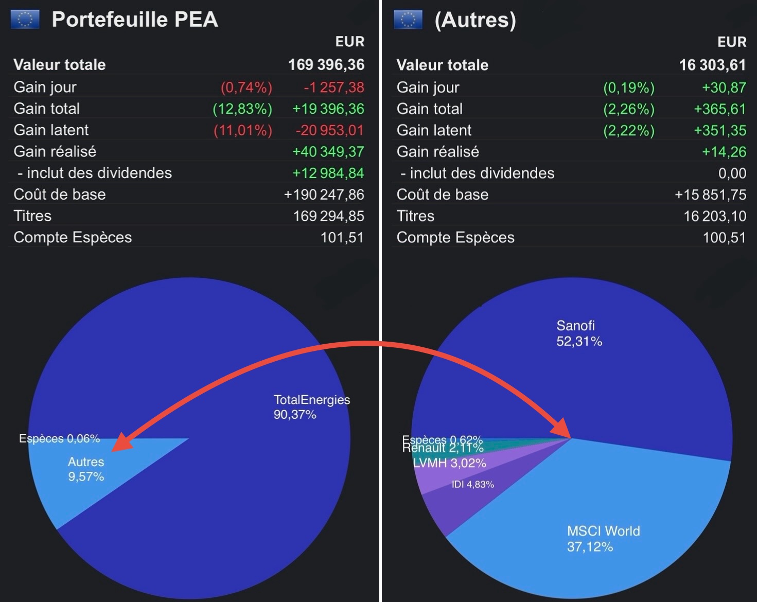 ce qui fait que toutes mes positions cto+pea sont au vert aujourdâhui !