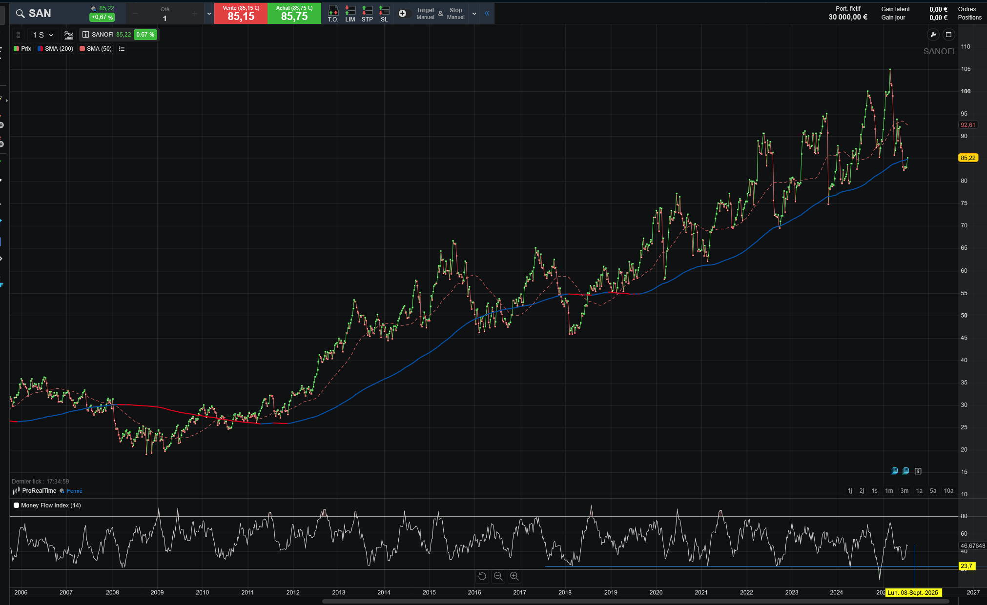 Attend Maiâs tu parle de Sanofi ? Sur Sanofi par contre le graph est de Zonebourse aucun tracĂ© nâest de moi mais oui ça part de plus haut si tu parle de celui lĂ