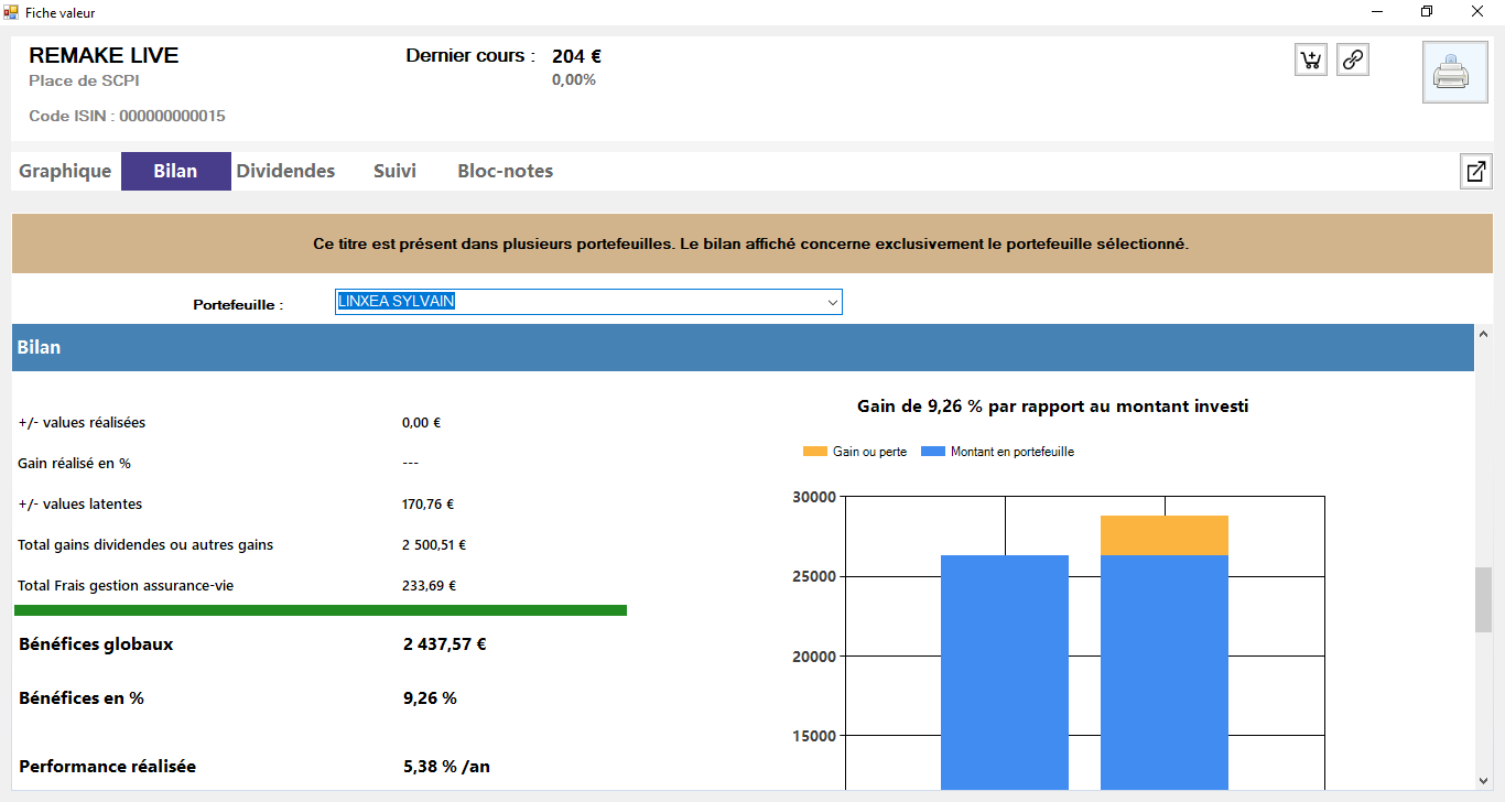 Remake Live achat en Aout 2022 est un rendement de 5,38% par an (pas de frais d’entrée)