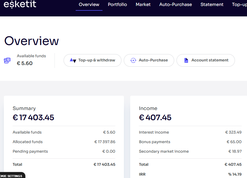 | ESKETIT | 2,58% | 21 478 € | ||||