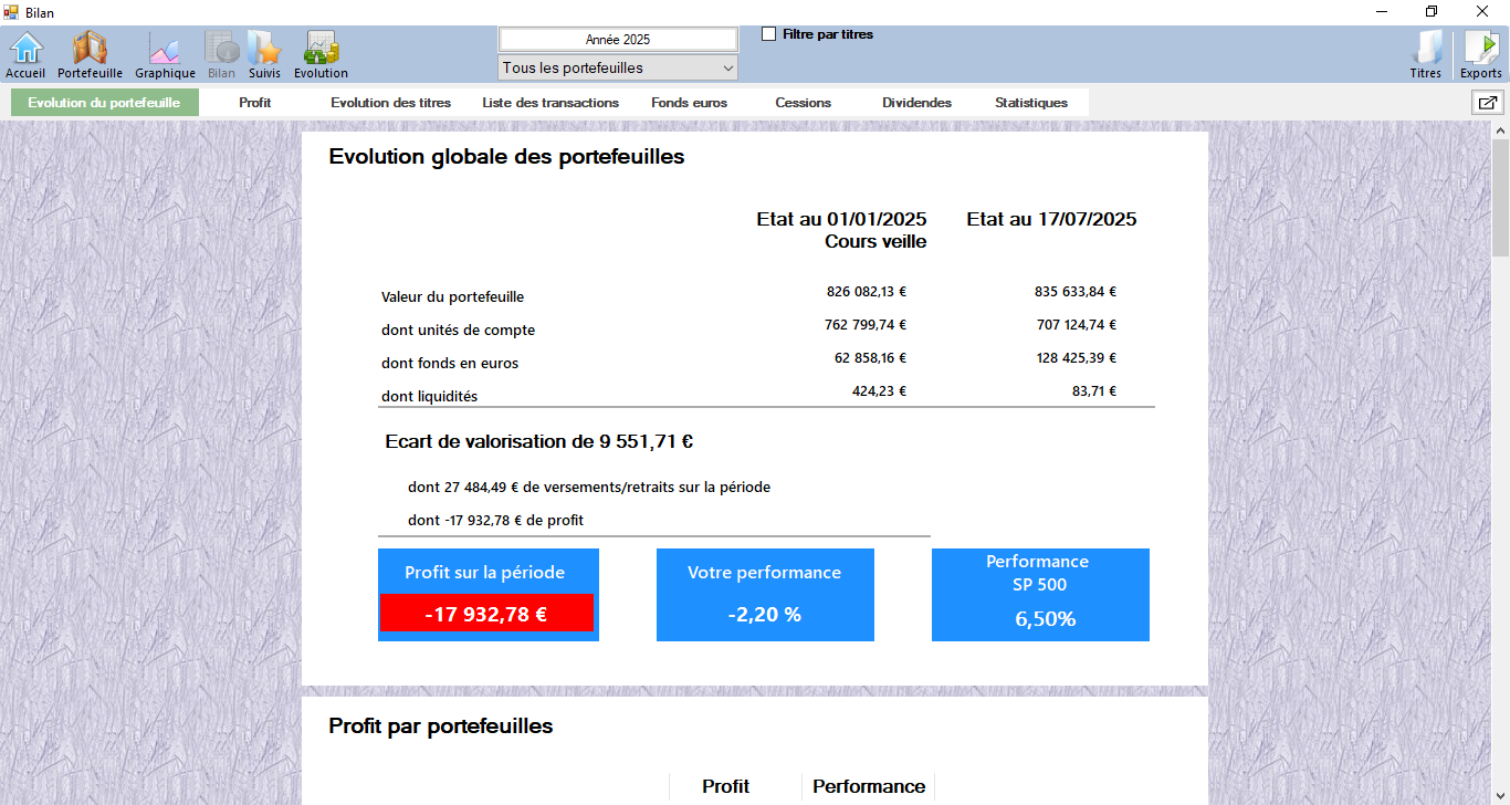Soit un rendement de -3,08% (-25489€) quand le S&P500 fait 5,31%