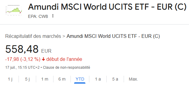 Je suis à -2,2% depuis le début d’année quand l’ETF monde en Euro est à -3,12%