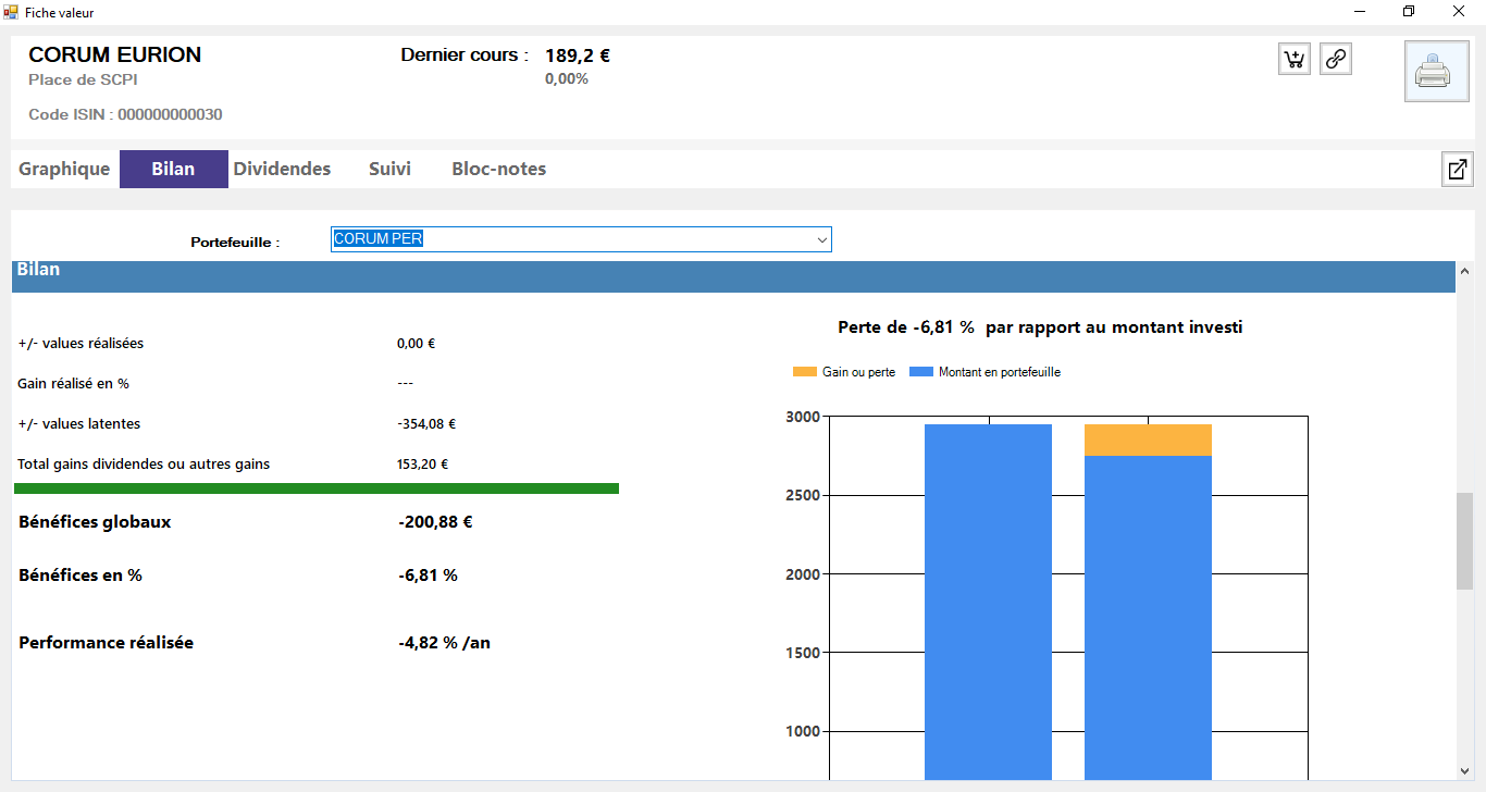 | SCPI CORUM EURION | 0,31% | 2 596 € | ||||