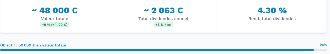 premier objectif de 1200 âŹ/an de dividendes : Atteint en septembre 2024