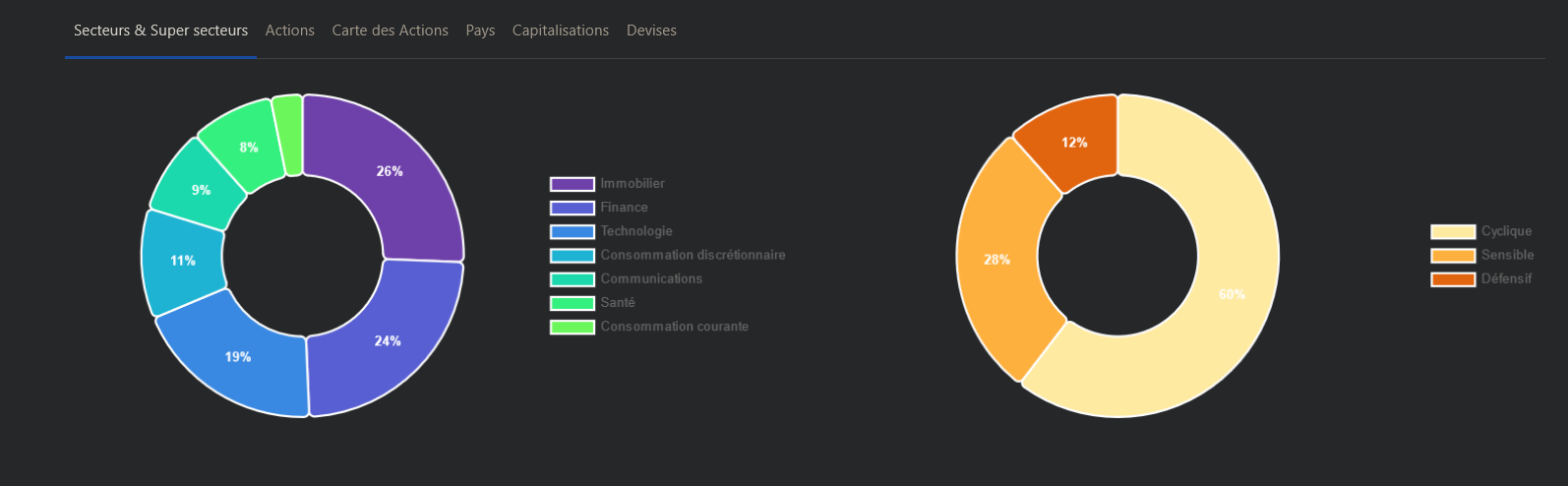 Taille des entreprises : Il inclut majoritairement des entreprises de grande capitalisation, ce qui est une approche plus sĂ»re. Toutefois, pour optimiser la croissance, il pourrait ĂȘtre intĂ©ressant de diversifier avec des entreprises Ă moyenne ou petite capitalisation, voire des start-ups Ă fort potentiel dans des secteurs Ă©mergents.