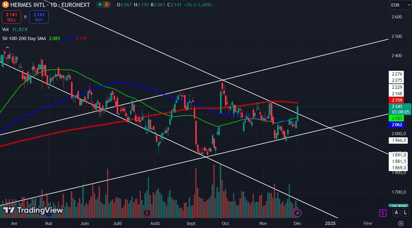 Berenberg a annoncĂ© avoir dĂ©butĂ© le suivi de HermĂšs Ă lâAchat avec un objectif de cours fixĂ© Ă 2330 euros
