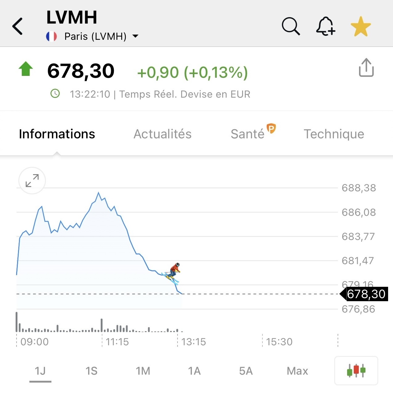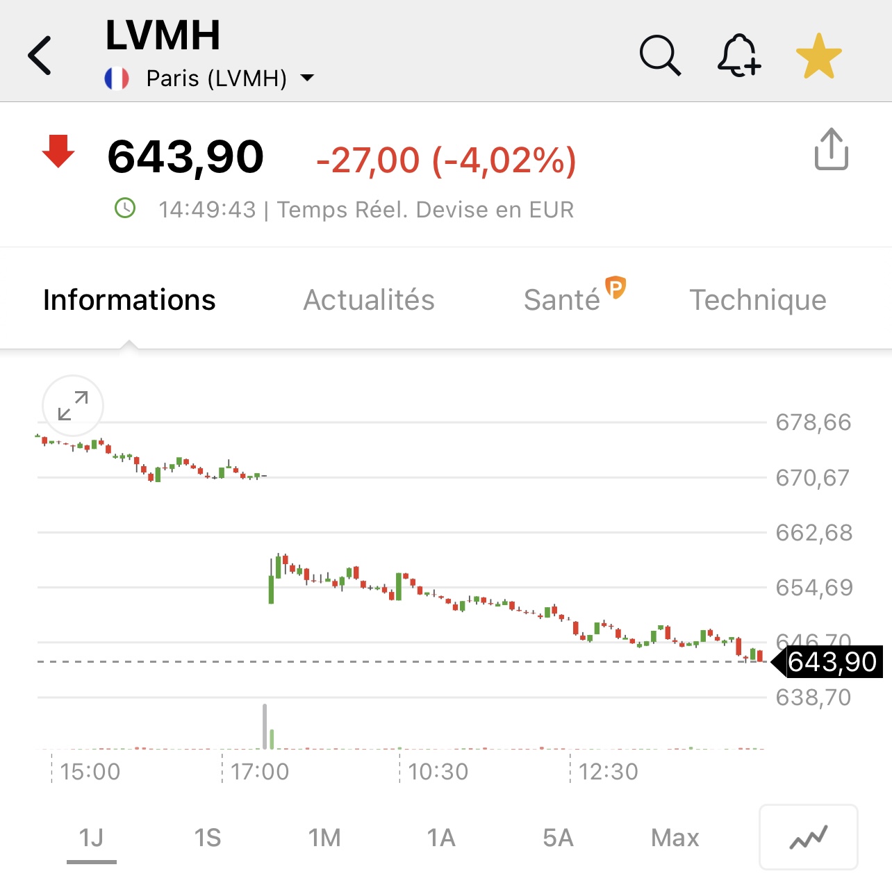 Avoir un PRU de 700/750 sur LVMH ajd peut ĂȘtre stressant car tu nâes pas sur de revoir tes sous tout de suite, voire que ça baisse encore
