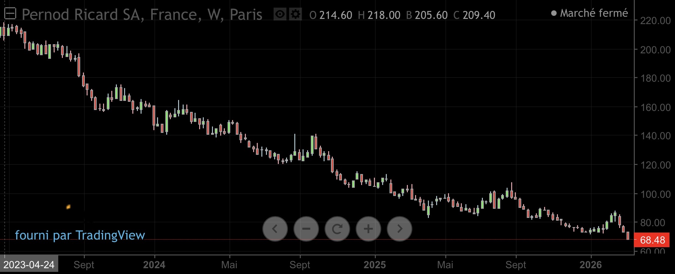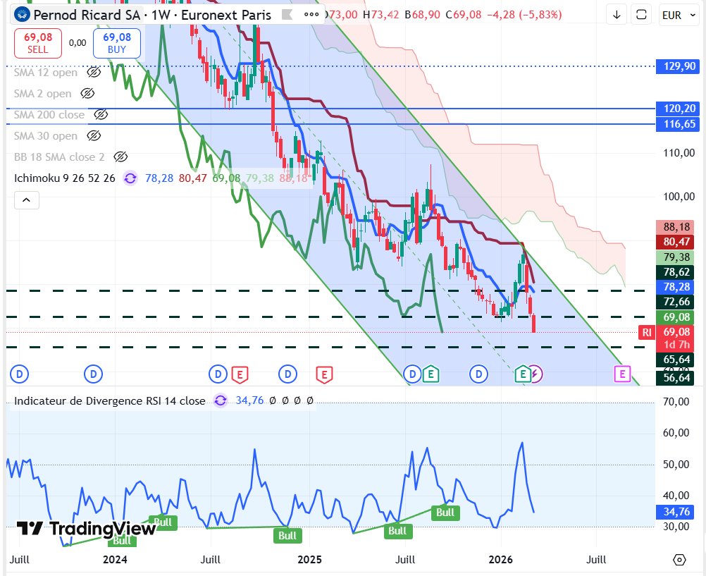 Pernod à 71,64€ dernière fois sur ce prix le 30 décembre 2011….
