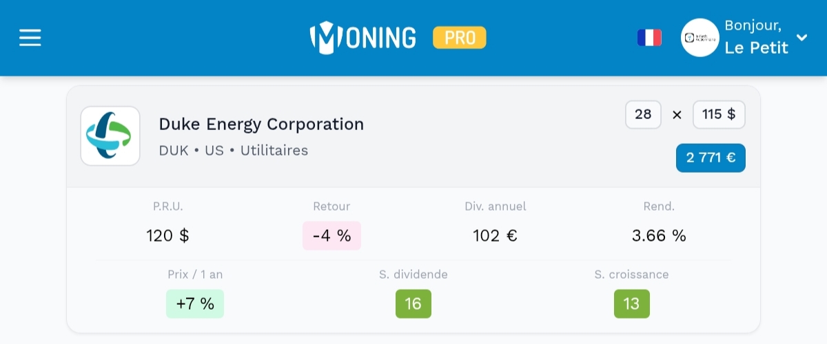 Je fais grossir ma position sur le producteur / transporteur / distributeur US dâĂ©lectricitĂ©. Toujours, dâaprĂšs ma thĂšse dâinvestissement dans les Ă©nergies, dans lâoptique de lâexplosion de la demande du fait de lâIA.