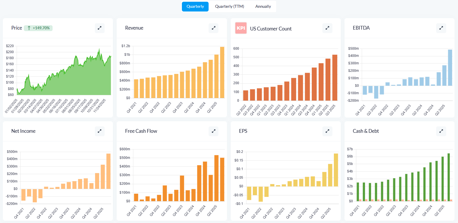 Lâexecution nâest pas au meme niveau si tu veux mon avis. Tâas une entreprise qui stagne depuis 3 ans et une qui sâenvole du point de vue fondamental. Et je ne te parle meme pas des marges (Operating margin de Tesla 4%, Palantir +20%)âŠ