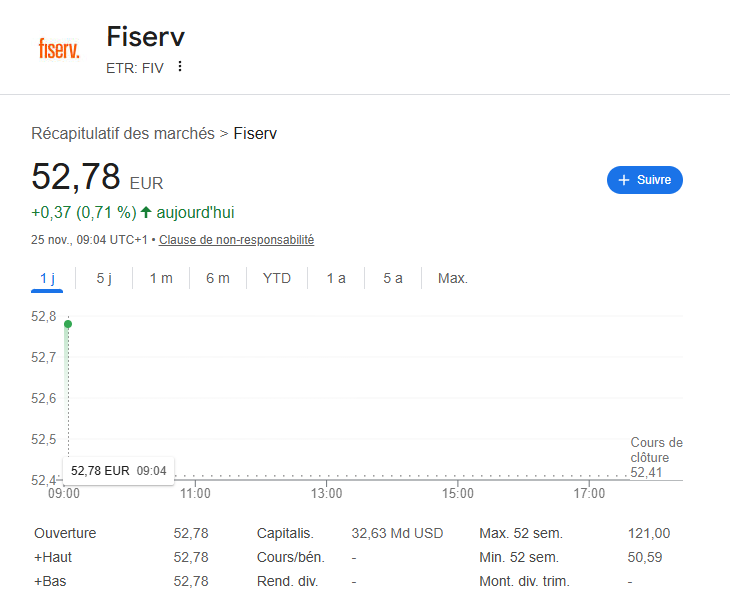 Bonjour je ne trouve pas l’action fiserv code Etr : FIV sur le screener c’est normal ?