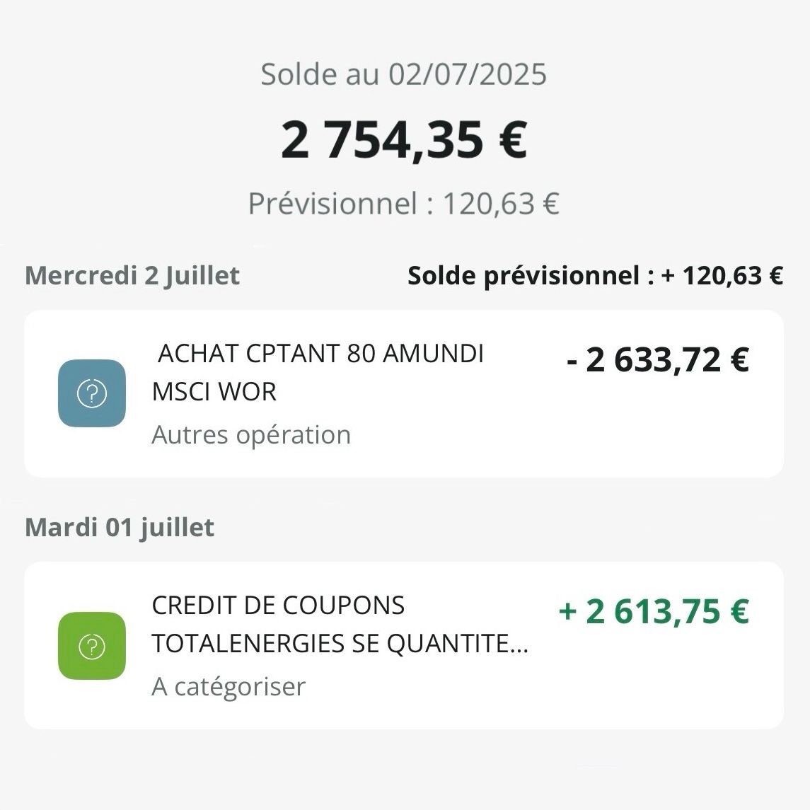 achat de 182 toto moins cher que prévu grâce à trump (-400 €) + dividende de toto hier.