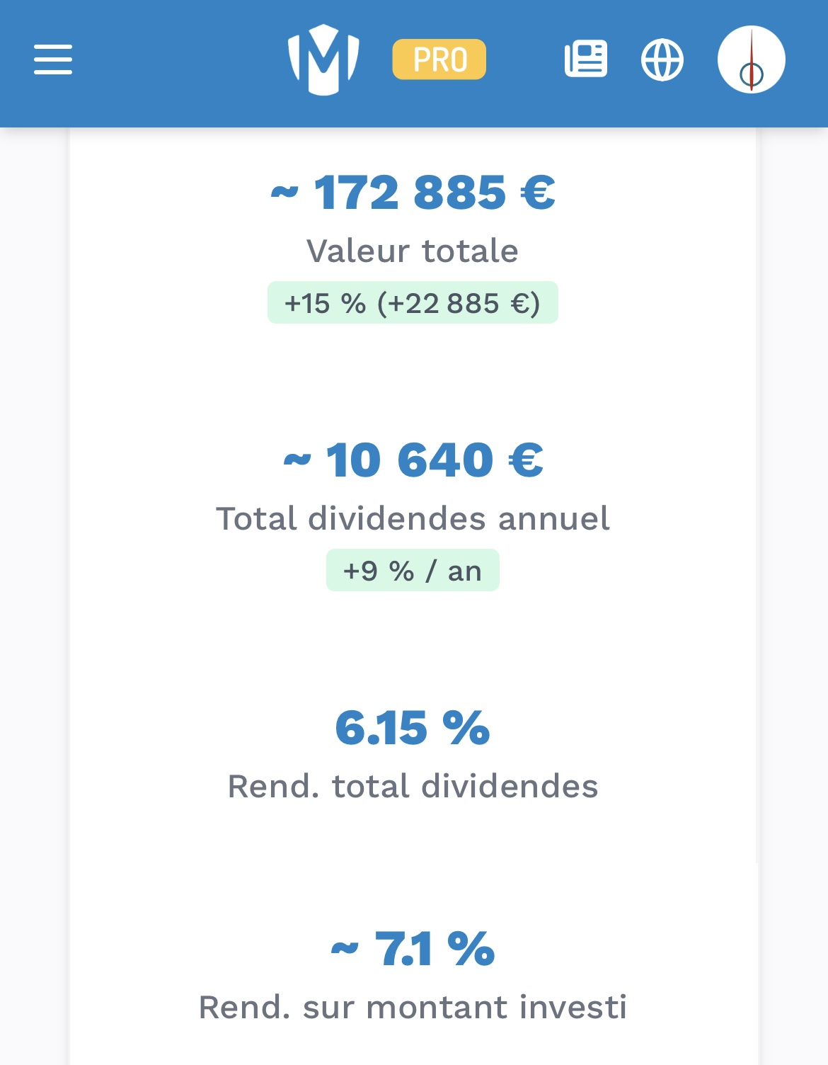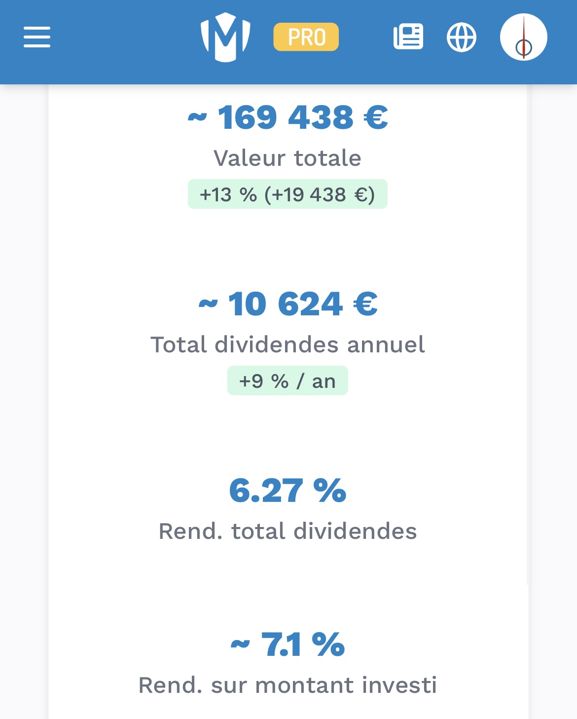 Et je suis déjà à 7,10% de rendement sur montant investi, je vais quand même garder mes 3000 actions actuelles c’est simplement les 10k€ de dividendes annuel qui repartent sur d’autres actions, donc le dividende sur montant investi vas continuer de croître