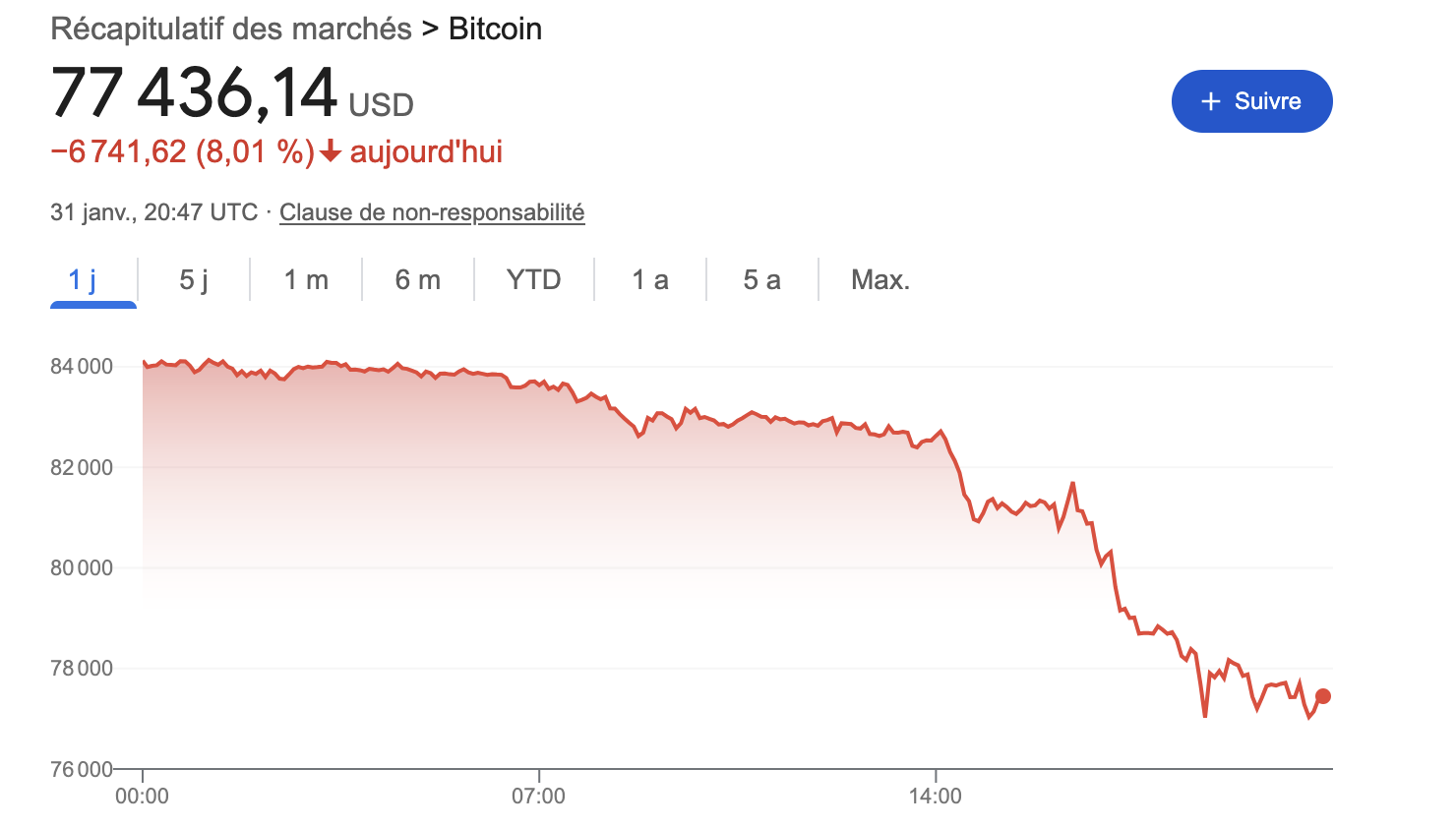 Bitcoin sous les 80k, on y est.